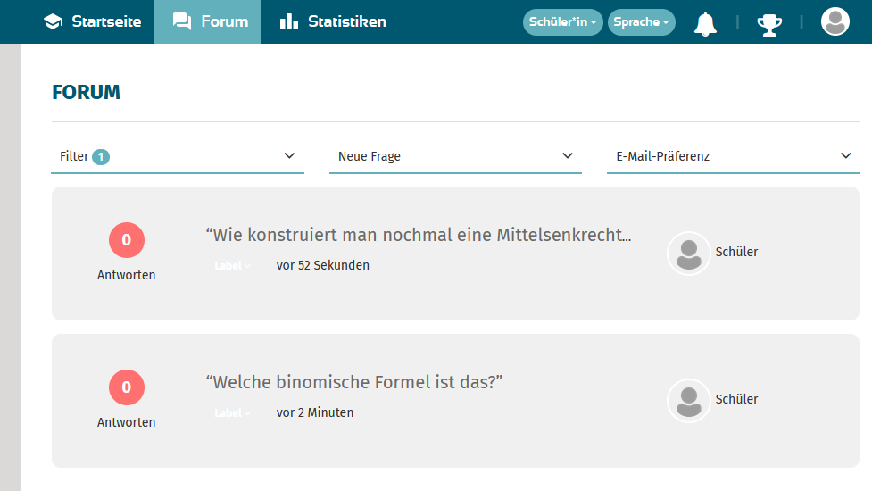 Fragen zu nicht-mathematischen Themen werden vom KI-Bot nicht beantwortet. Außerdem kann der KI-Bot von der Lehrkraft in den Einstellungen für das Lernstudio an- oder abgeschaltet werden. Details zur Funktion und zum Einsatz des KI-Bot finden Sie in unserem Hilfeartikel „Wie verwende ich den KI-Bot?“.