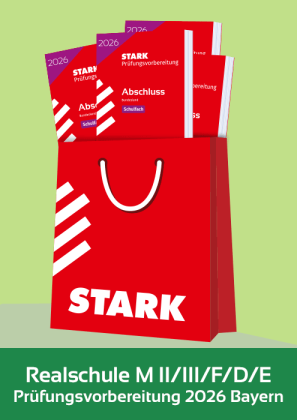 Mit unserem Komplettpaket bereitest du dich perfekt auf die Abschlussprüfung nach dem LehrplanPLUS vor. Du erhältst alle STARK Produkte, die du für ein umfassendes Prüfungstraining brauchst. Das Paket vereint das Beste aus zwei Welten: gedruckte Übungsmaterialien mit erprobtem Konzept und digitale Lerninhalte für ein interaktives, abwechslungsreiches Lernen.